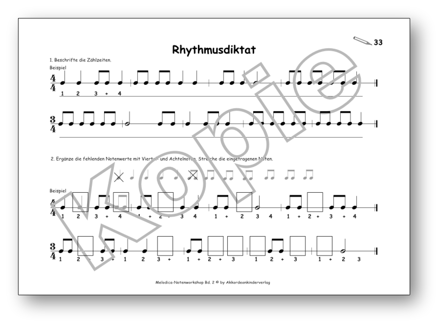 - Rhythmus bis Achtelnoten lernen und schreiben mit Notenbausteinen