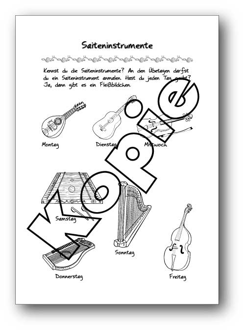 Auf jeder Seite findet ihr schöne Musikinstrumente und viele Notenspiele zum Anmalen. Beim Malen lernt ihr die Musikinstrumente und die Noten kennen. Das Hausaufgaben- und Übungsheft ist das Verbindungsglied zwischen Musiklehrer und Elternhaus und möchte den Schülern einen Anreiz und zum täglichen Üben geben.