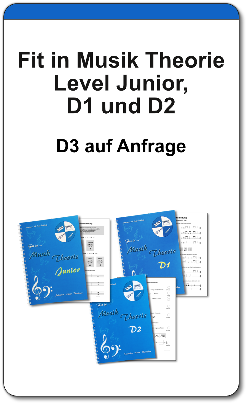 Fit in Musik Theorie ist ein neues Konzept das musikbegeisterte SchülerInnen auf die freiwilligen Leistungsprüfungen im Fach Musiktheorie in drei Arbeitsheften vom Level Junior bis D2 vorbereitet. Die Inhalte orientieren sich am Lehrplan des Verbandes Deutscher Musikschulen (VdM) an den freiwilligen Leistungsprüfungen des VBSM, sowie den Prüfungsstufen der Laienmusikverbände.